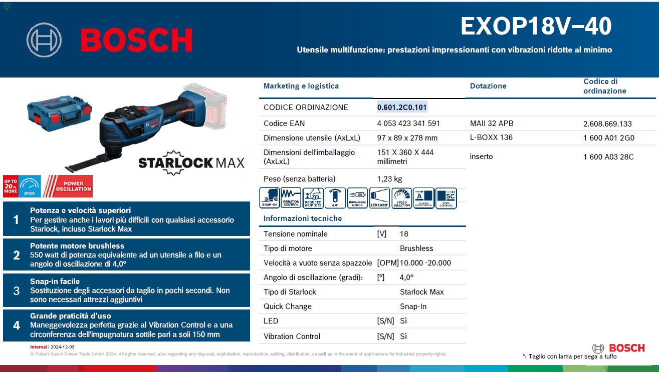 In summary, the Bosch Expert EXOP 18V-40 is a professional multifunction tool geared towards precision and control , designed for technical finishing jobs where errors are not tolerated. Performance and reliability consistent with Bosch standards.
